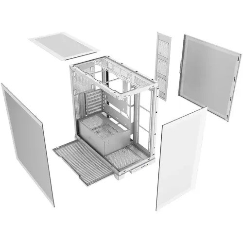 The 1STPLAYER Mi8 White ATX Gaming Casing is a high-end gaming case with outstanding performance and adaptability. This shell is compatible with a broad range of gaming configurations because it is designed to handle M-ATX, ATX, and ITX motherboards. The inside of the Mi8 White is roomy. This enclosure has enough space to accept graphics cards up to 425mm in length, allowing gamers to install even the most powerful GPUs without trouble. The 4mm toughened glass panoramic side transparent glass gives a breathtaking glimpse of the interior components, giving a touch of refinement to your gaming setup. The Mi8 White has a side suction cooling exhaust and fan compatibility for 10*12cm fans to offer optimal cooling for your system. This enables for better ventilation and keeps your components cool even after intense gaming sessions. Whether you’re overclocking your CPU or pushing the limits of your graphics card, the Mi8 White has you covered. The Mi8 White accepts power supplies up to 180mm in length, allowing it to run even the most powerful gaming systems. It also accommodates a 360mm liquid cooler, allowing for effective liquid cooling solutions. With a CPU maximum height of 180mm, high-performance CPU coolers may be installed without limitation. The Mi8 White has a plethora of storage options. It supports 3.5 HDD*1+2.5 SDD*2 hard drives, enabling you to store all of your games, data, and media without restriction. This adaptability guarantees that you have enough storage space for all of your gaming demands. The 1STPLAYER Mi8 White ATX Gaming Casing is a dependable and adaptable addition to any gaming setup. This shell is likely to improve your gaming experience with its high-performance features, roomy interior, and compatibility with a broad range of components. The Mi8 White contains everything you need to construct the ideal gaming system, whether you’re a casual gamer or a dedicated fanatic.