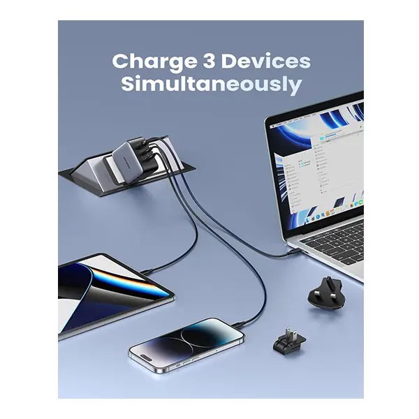 | Additional Info | Brand: UGREEN Model: CD296 Input voltage: 240 Volts Total USB ports: 3 Input: 100-240V~50/60Hz 1.8A Max USB-C1/C2: 5V/3A, 9V/3A, 12V/3A, 15V/3A, 20V/3.25A 65W Max PPS:3.3-21V/3A USB-A: 5V/3A, 9V/2A, 12V/1.5A, 4.5V/5A, 5V/4.5A; 22.5W Max Fast Charging Protocol PD: 3.0/2.0; QC 4.0+/4.0/3.0/2.0; 5V/1A; 5V/2.4A; AFC; SCP; PPS Protection Short Circuit Protection, Over Voltage Protection, Overheat Protection, Over Current Protection, Power Dispenser System, Overcharge Protection Plug Included US plug, EU plug, UK plug Product Dimensions 2.56 x 2.56 x 1.28 inches Item Weight 12 ounces |